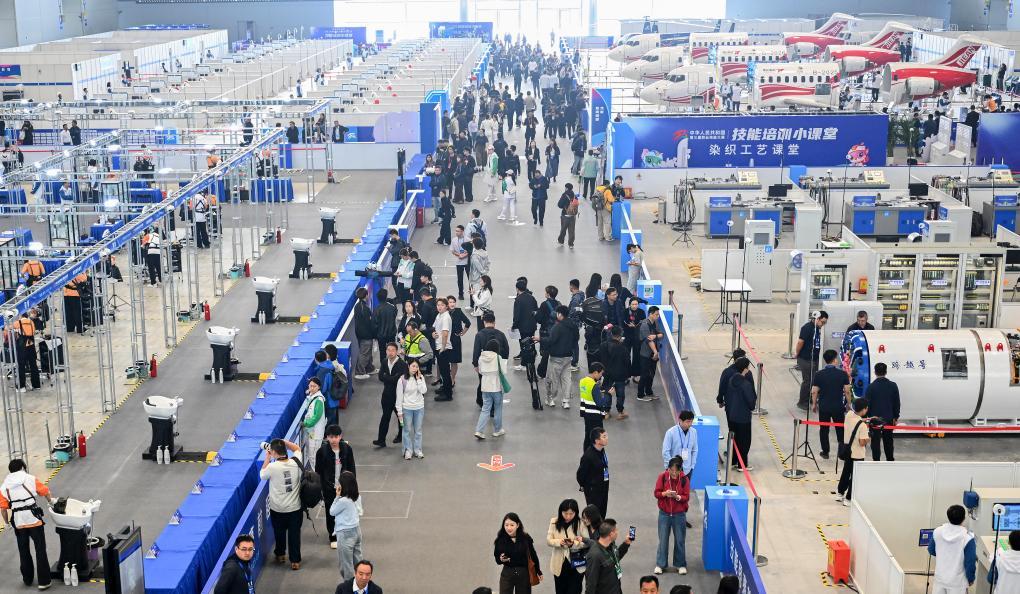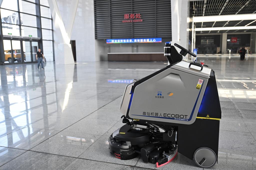 一台自主移动清洁机器人在第三届全国技能大赛赛场运行。