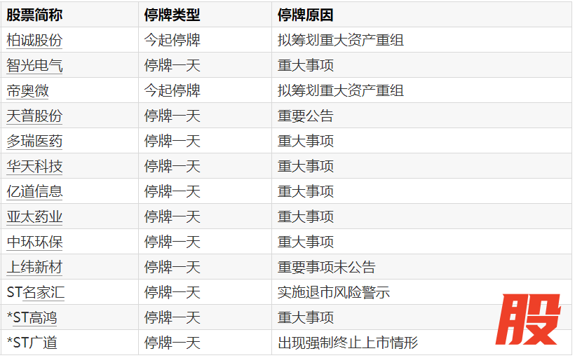A股停牌提示:13股今日停牌A股停牌提示:13股今日停牌